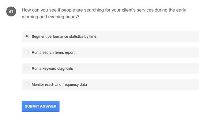 เฉลยแนวข้อสอบ Google AdWords Fundamentals – How can you see if people are searching for your client’s services during the early morning and evening hours?