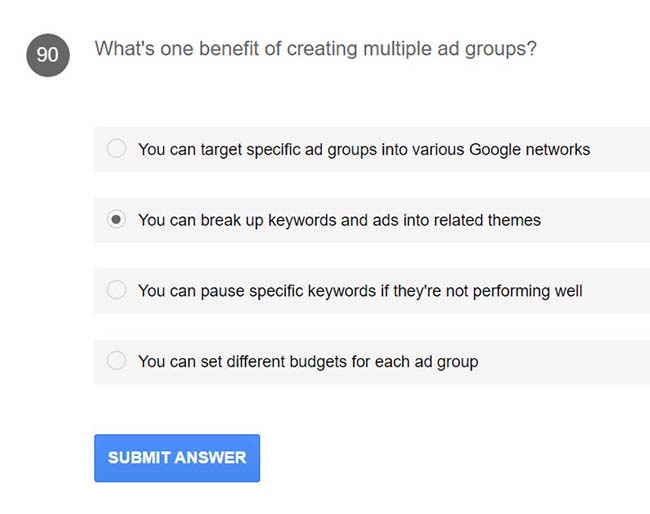 90. What’s one benefit of creating multiple ad groups?